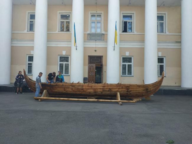 Виготовляли бойовий човен вікінгів – драккар на території Рівненського обласного краєзнавчого музею. Ініціатором будівництва був рівненський веломандрівник Юрій Ойцюсь. Ще учора він скликав чоловіків, щоб допомогли перенести човен до воріт музею, а звідти – відправити його на Басівкутське озеро, щоб на День Незалежності катати там всіх охочих. Помічників знайшлось чимало, і човен з місця будівництва сьогодні вранці перенесли до воріт музею. Як все відбувалось, дивіться на відео Юрія Ойцюся.