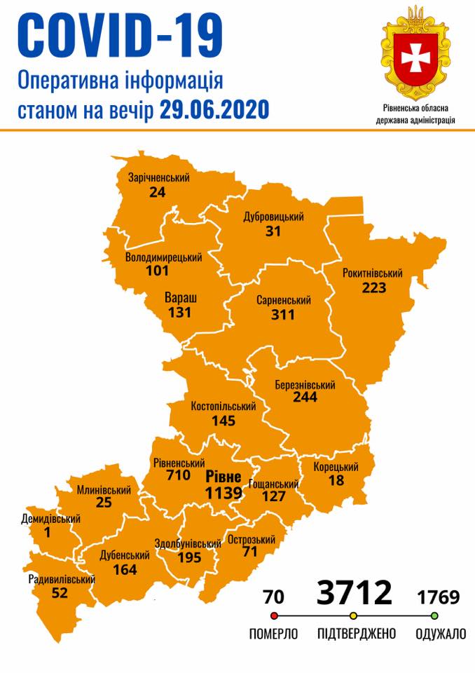 Таким чином в Рівненській області наразі маємо 3712 випадків захворювання на коронавірус.