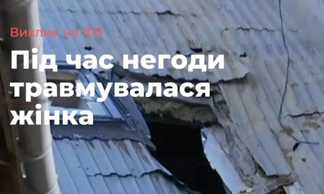 Відомо, що під час поривчастого вітру та грози жінка (62 роки) вийшла на подвір‘я. В той час через негоду обірвалася частина даху та комину будинку. Уламки потрапили на жінку.