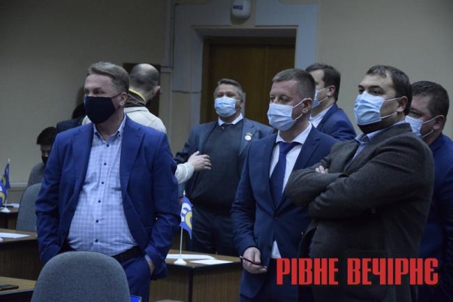 Коаліція в раді утворилася з партій «ЄС», «Рівне Разом», «За майбутнє» та «Свободи». Коаліція має 26 голосів.