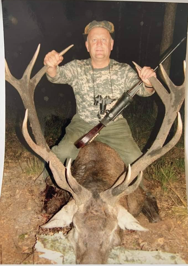 Світлину опублікував на своїй Facebook-сторінці, де видно як він усміхнений зі зброєю в руках сидить на вбитому олені.