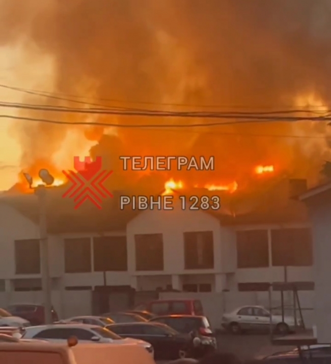 Дах будівлі - у вогні. У коментарях рівняни пишуть, що полум'я поширюється. Горять новозбудовані котеджі.