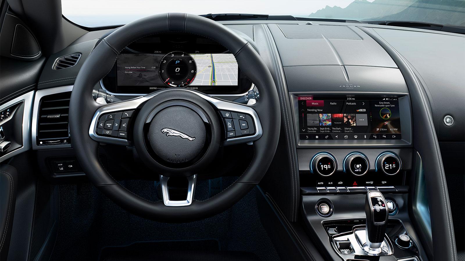 В інтер’єрі Jaguar F-TYPE ви знайдете комбінацію преміальних матеріалів та новітніх технологій: