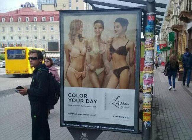 Рівнянку Ларису Бєлову обурила реклама спідньої білизни, яку нещодавно розмістили на зупинках громадського транспорту у Рівному, зокрема навпроти драмтеатру. Жінка вважає, що зображення з напівголими дівчатами у рекламованій білизні — неетичне, та вимагає таку рекламу у місті зняти. Відповідну петицію вже зареєстровано на сайті міськради.