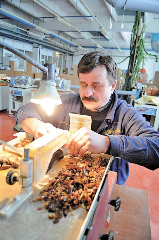 Чому ми взяли в оренду територію ДП «Бурштин України»? Бо це єдине підприємство, де можна було легально купити сировину. На видобуток ми навіть не претендували. Але чого тільки варта була процедура підписання договору оренди! Здавалося б: приватна фірма готова платити гроші у бюджет і використовувати приміщення, які простоюють, виробляти товари, сплачувати податки. Але ні — державі цього не потрібно. Усе корумповано. Я п’ять разів літав в Об’єднані Арабські Емірати, знайшов хороших замовників на продукцію, але ж механізму постачання нема. Та й та невелика кількість бурштину, яку нам держпідприємство поставило за договором, була неякісною. Це радше відсів, з якого важко щось робити.