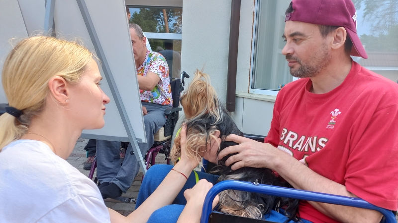 У кожного бійця тут своя історія. Хтось отримав поранення, коли рятував товариша, а когось на позиції просто зненацька «накрило» уламками від мін. Трапляється, що після пережитого на війні бійці не завжди хочуть спілкуватися. Але заняття з собаками допомагають хоч частково зняти стрес. Дехто прийшов на заняття вперше, а хтось за цей час навіть уже вибрав собі собаку-улюбленця. До кожного пацієнта-військового — свій підхід.