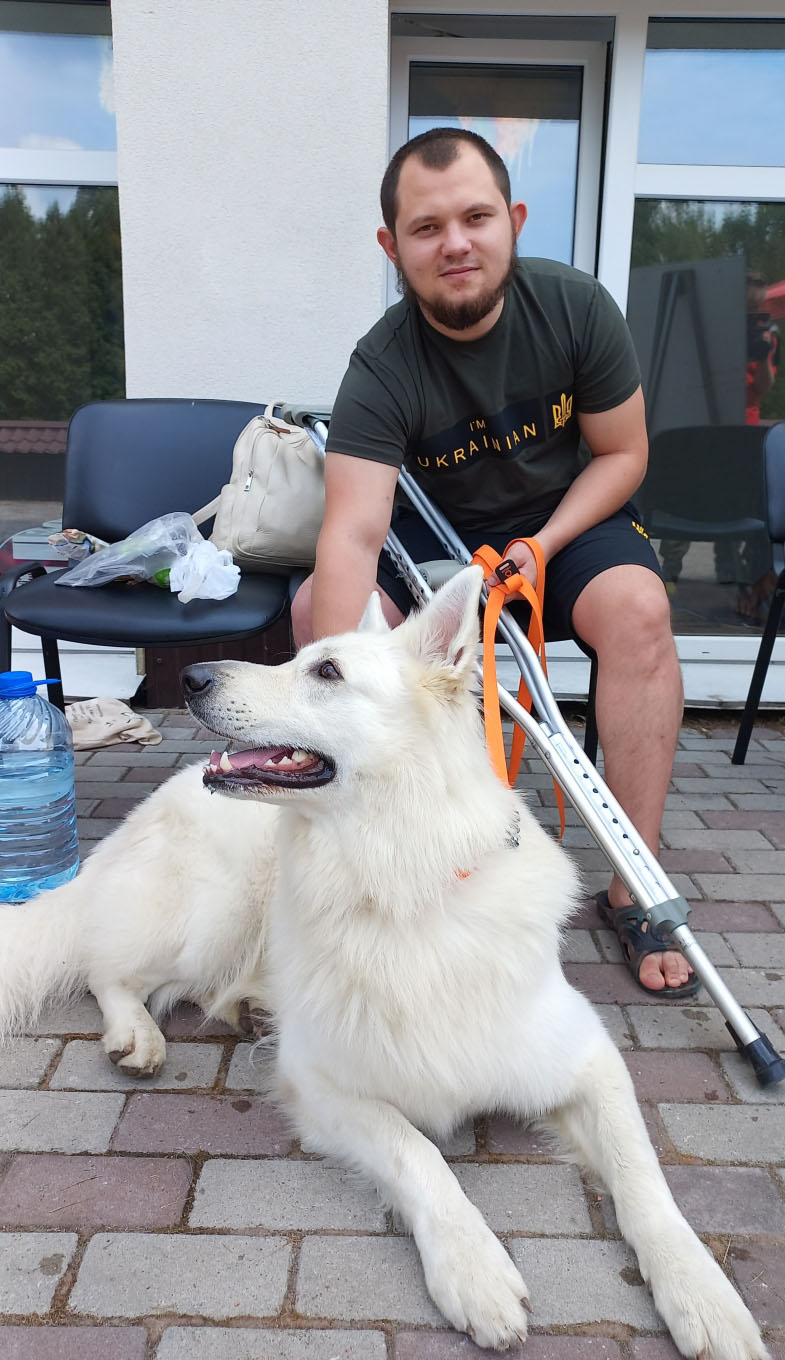 Іван Фуколяк з Миколаєва після травм пересувається на візку. Він тримає на колінах Тортика, намагається погладити його лівою рукою — пальці ледве розгинаються, але боєць не здається. Втім, уважно стежить, щоб під час вправи ненароком не зробити собаці боляче.