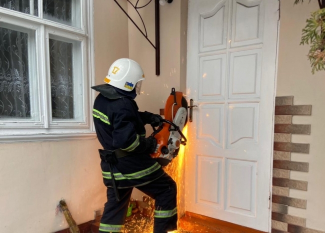 Тому правоохоронці звернулися до рятувальників, а ті за допомогою болгарки відчинили вхідні двері.