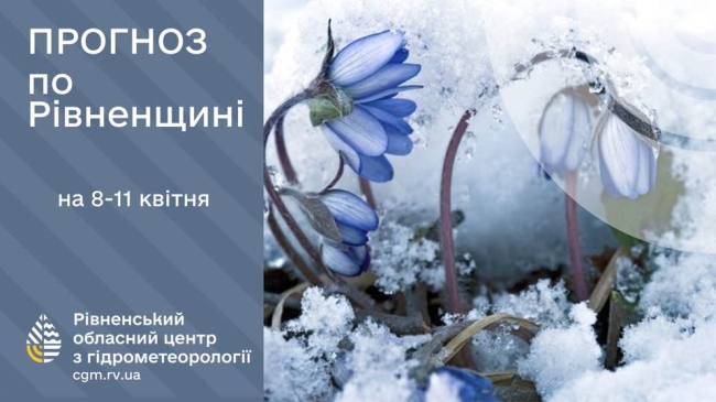 9 квітня, середа: хмарно з проясненнями. Місцями невеликий сніг вдень з дощем. На дорогах ожеледиця. Вітер північно-західний, 7-12 м/с. Температура вночі та вранці: надзвичайні заморозки до 6º, вдень 0-5° тепла. Атмосферний тиск буде падати.