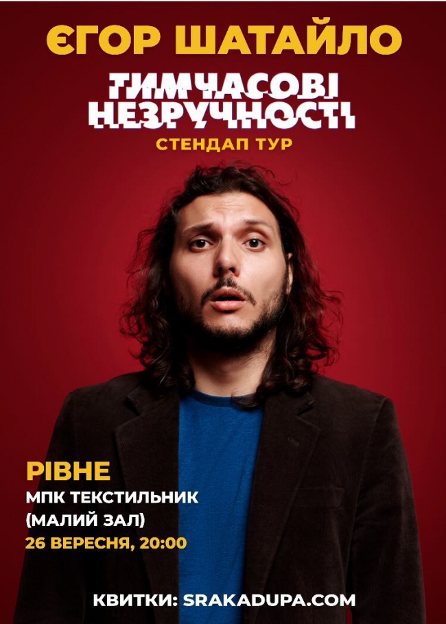 Єгор Шатайло – стендап-комік, сценарист «Телебачення Торонто», співведучий комедійного шоу «Гомін Аут» на Радіо Промінь, вирушає в стендап тур під назвою «Тимчасові Незручності».
