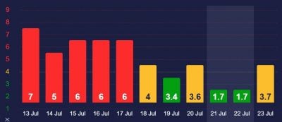 Сьогодні, 22 липня, К-індекс, який показує силу магнітної бурі, буде близько 1,7. Це дуже слабка магнітна буря. Однак уже 23 липня її сила збільшиться до 3,7. Це теж вважається слабкою магнітною бурею, але метеочутливі люди все ж можуть відчути її вплив.