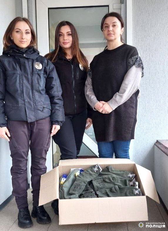 Поліцейські передали 100 пар теплих шкарпеток та спільно з волонтерами зібрали кошти для придбання теплих рукавиць