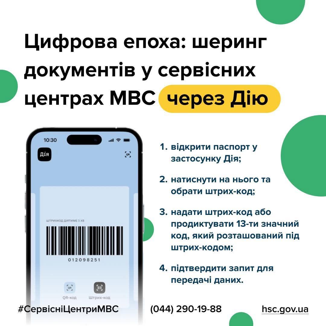 Електронні документи не тільки економлять час, а й знижують ризик їх втрати чи пошкодження. У сервісних центрах МВС можливо пошерити паспорт у форматі ID-картки. Під час отримання адміністративних послуг необхідно повідомити адміністратору сервісного центру МВС про те, що бажаєте поділитися документами онлайн через застосунок Дія.