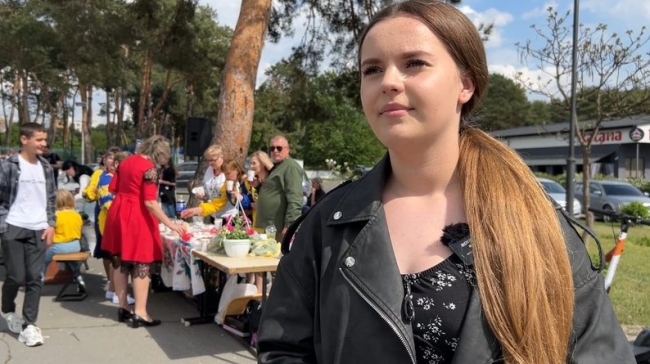 Дев’ятикласники Єлізавета Гаврилюк та Матвій Ящук приїхали на благодійний ярмарок до Вараша, аби допомогти у зборі для Збройних сил України. Це був перший їх виступ на публіці. Раніше друзі влаштовували пісенні благодійні онлайн-трансляції. Єлізавета розповіла Суспільному, що почали співати, коли Матвій опанував гітару: