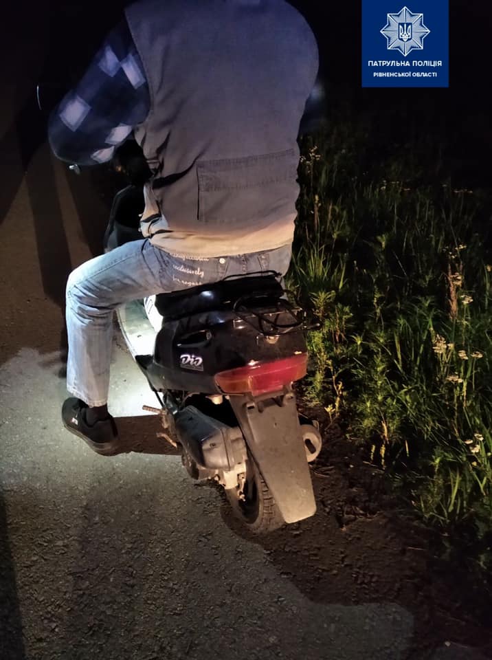 На автомобільній дорозі М-О6 Київ-Чоп поблизу села Підлужжя, патрульні помітили чоловіка, який їхав на скутері Honda Dio без номерного знаку, тому подали йому сигнал про зупинку.