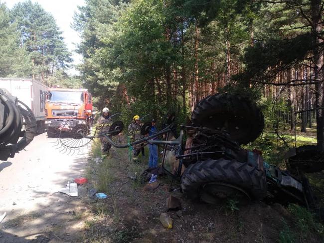 Прибувши на місце ДТП,  рятувальники побачили перекинутий у кювет трактор та пошкоджену вантажівку. На землі лежав тракторист.  Йому рятувальники спільно із бригадою швидкої медичної допомоги надали першу невідкладну допомогу та транспортували до карети швидкої медичної допомоги. Наразі водій знаходиться у лікарні. Його стан оцінюють медики. Водій вантажного автомобіля не постраждав. Усі обставини цієї ДТП встановлює поліція. До надання допомоги було залучено дві одиниці спецтехніки ДСНС та семеро рятувальників.