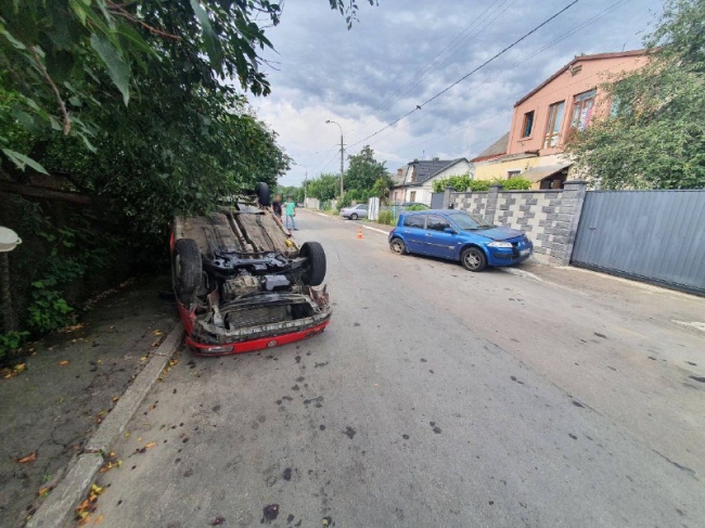 65-річний водій автомобіля “Фольксваген” на вулиці Бічній не був уважним, не дотримався безпечного бокового інтервалу, зачепив припаркований автомобіль “Рено” і перекинувся на дах. Чоловік отримав незначні ссадни та забої.