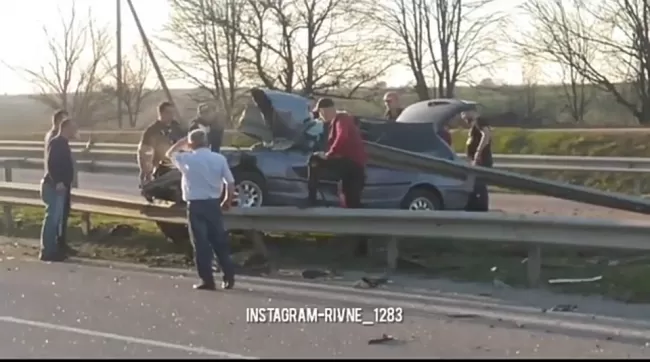 За попередньою інформацією, водій автомобіля “BMW”, рухаючись у напрямку Рівного , допустив зіткнення із мікроавтобусом “Renault Traffic”, який рухався у попутному напрямку. Після цього легковик наїхав на відбійник.