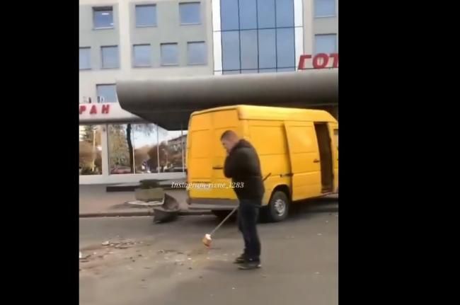 ДТП у Рівному: водій узяв мітлу та прибрав після себе (ВІДЕО)