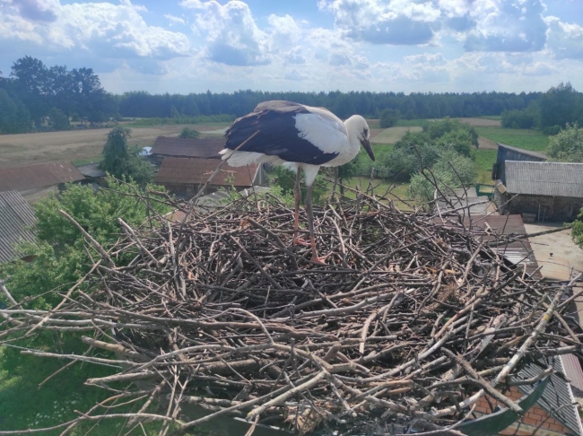 Працівники Дубровицької дільниці з експлуатації розподільних мереж, дізнавшись про цю історію під час відновлення електропостачання у селі, вирішили подбати про нову оселю для буслів.
