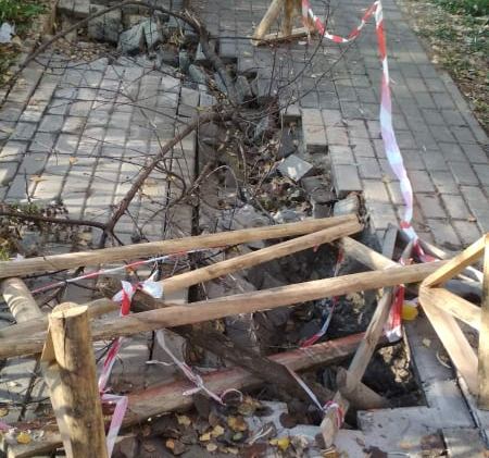 Додамо, що через порив була пошкоджена популярна пішохідна доріжка між дворами.