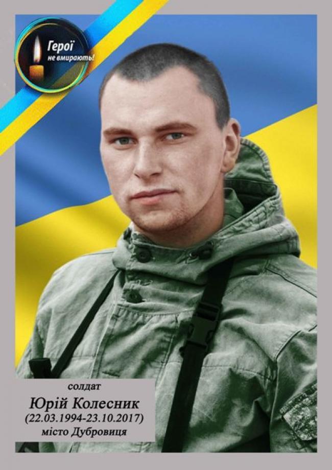 Старший солдат КОЛЕСНИК Юрій Олександрович, народився 22 березня 1994 р., у м. Дубровиця Рівненської області. Проходив службу у 28-ій окремій механізованій бригаді на посаді – стрілець-зенітник.