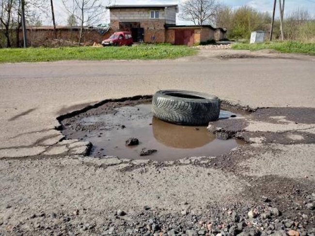 За несприятливих погодних умов та при недостатній видимості водій кросовера «Mazda», житель Київської області, на автодорозі «Київ-Ковель-Ягодин» неподалік міста Сарни близько 21-ї години потрапив у вибоїну, внаслідок чого пошкодилися два задніх колеса.