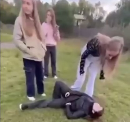 На записі видно, як підлітки повалили дівчину на землю, били ногами, тягнули за волосся та згодом розпилили сльозогінний газ в обличчя.
