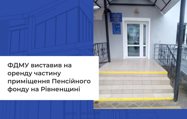Загальна площа — понад 40 квадратних метрів. Майно перебуває на балансі Головного управління Пенсійного фонду України в Рівненській області та здається в оренду на 5 років.