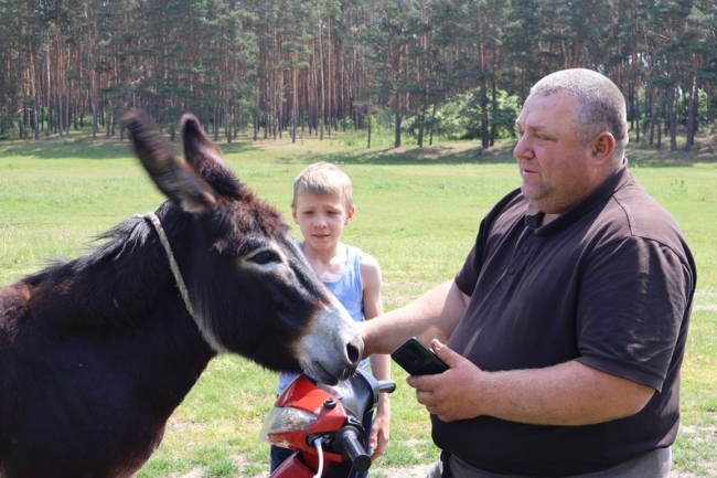 Сергій Харечко із села Одринки на Рівненщині придбав для дітей ослицю на ім’я Ноомі. З його слів, тварина має спокійний характер, тому підходить для малечі, аби навчитись їздити верхи.
