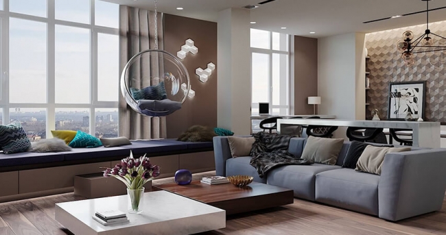 Дизайн квартиры в современном стиле должен быть сдержанным, функциональным, натуральным. Чтобы этого добиться используйте только полезные элементы интерьера и декора.