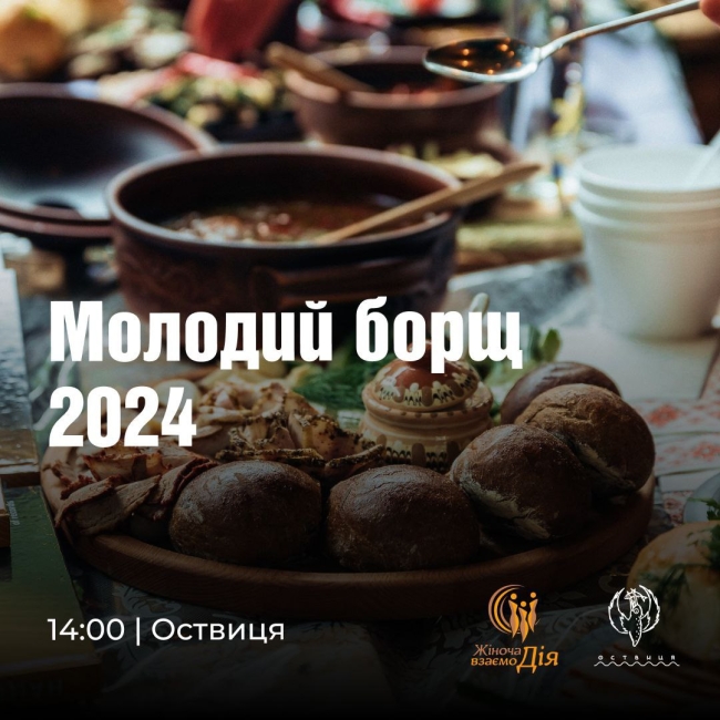 з 13:00 – старт приготування борщів за 11 унікальними рецептами і частування на фудзоні заходу. А з 15:30 – частування борщами і можливість обрати свого фаворита серед команд;