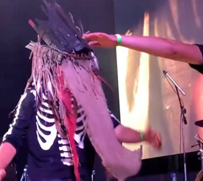 Також, глядачі звернули увагу і на ще одного музиканта гурту. Останній виступав в дивакуватій масці.