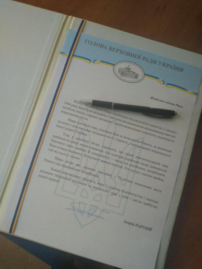 Щира вдячність вам, учасники боїв за визволення Рівного, за виняткові зусилля у відстоювання людської честі і гідності, у виборюванні незалежності нашої рідної України, – йдеться у тексті.