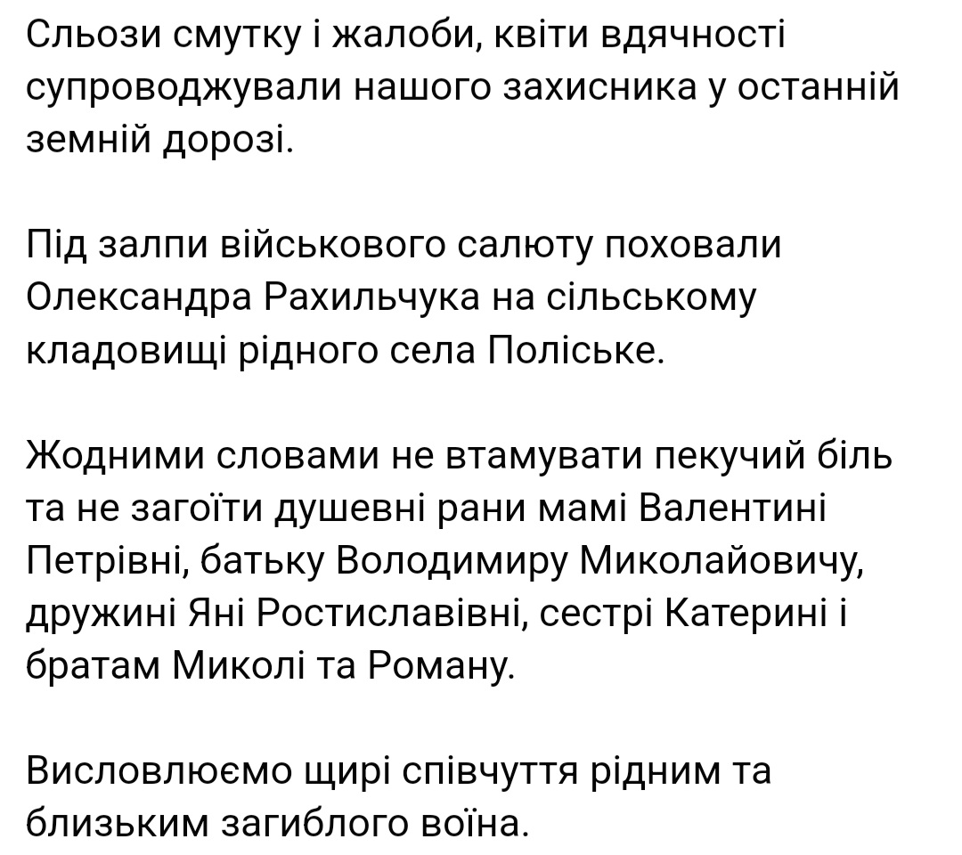 Як розповіли у Березнівській громаді, провести Героя в останню путь вийшли жителі кількох сіл.