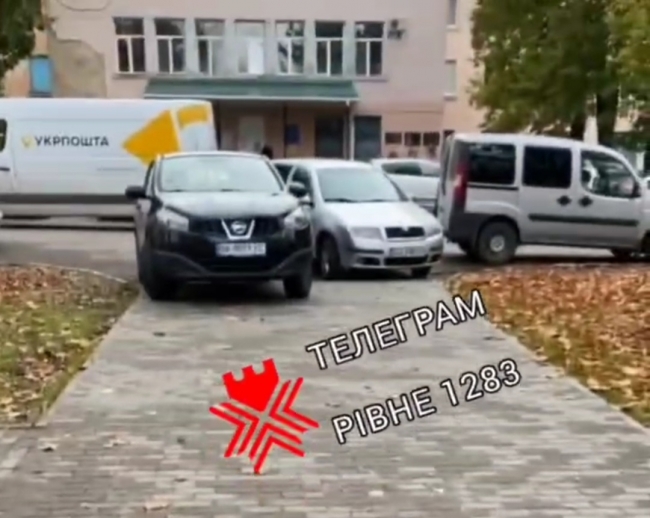Рівнянка показала на відео у телеграм-каналі Рівне1283, як деякі водії залишають свої автомобілі біля обласної лікарні. Вона саме прогулювалася з немовлям у дитячому візочку.