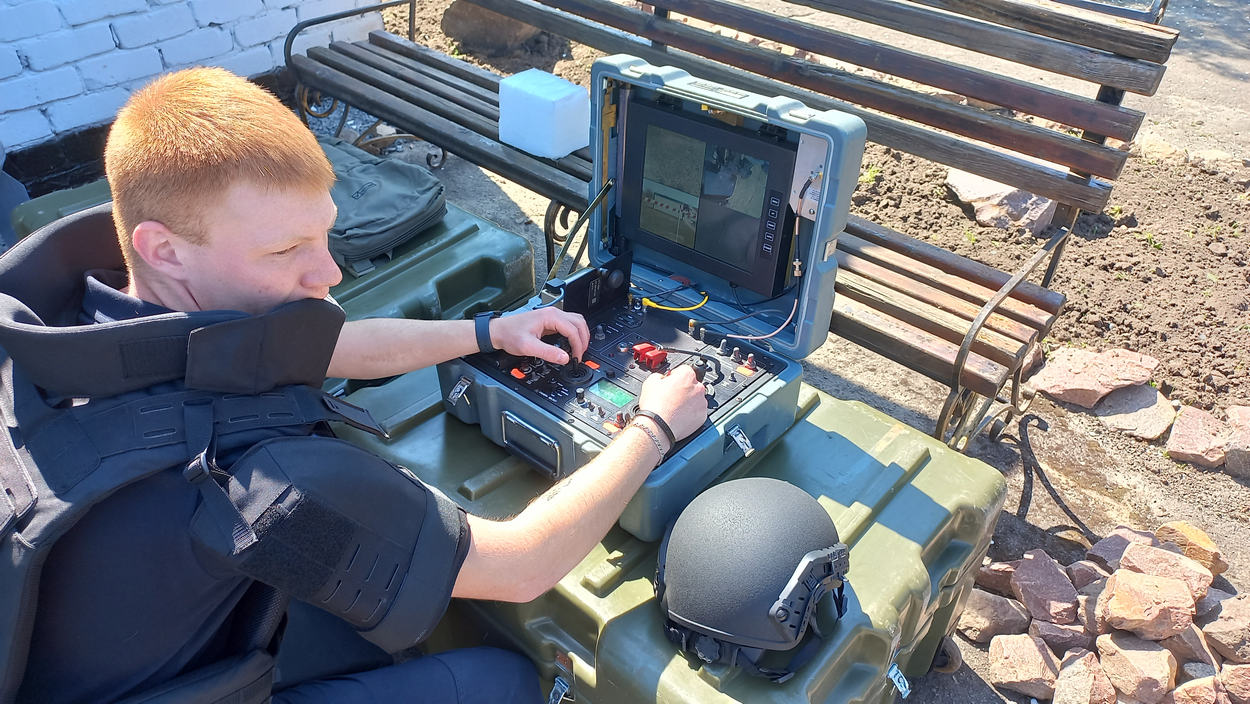 Цей тактичний робот керується з пульта, має запас ходу — 500 метрів. Керувати роботом вчилися самі, вивчали інструкцію. Але керувати ним не так просто, як хтось може подумати — це не те саме, що комп’ютерні ігри чи радіокеровані дитячі іграшки. Є багато нюансів, це клопітка робота, тут треба сидіти і тренуватися годинами. Бо діяти треба обережно, не різко.