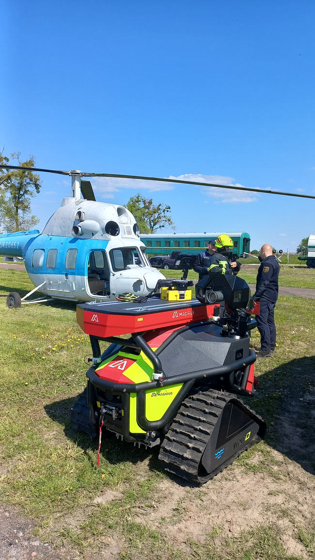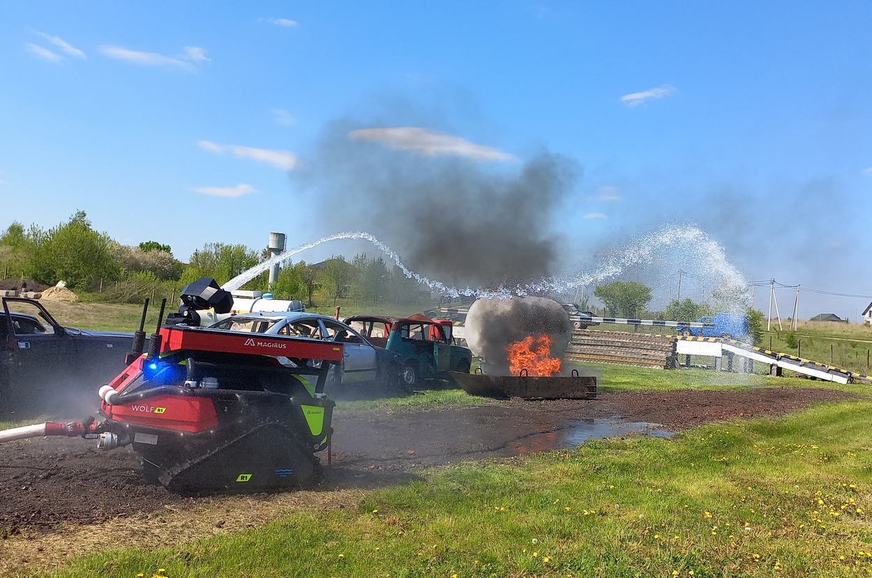 Випробовують нині на полігоні ДСНС й іншого тактичного робота — Magirus WOLF R1. Він в рази більший, але його призначення уже не розвідка і допомога піротехнікам, а гасіння складних пожеж. Придбали його за державний кошт. Коштує такий майже 10 млн. гривень.