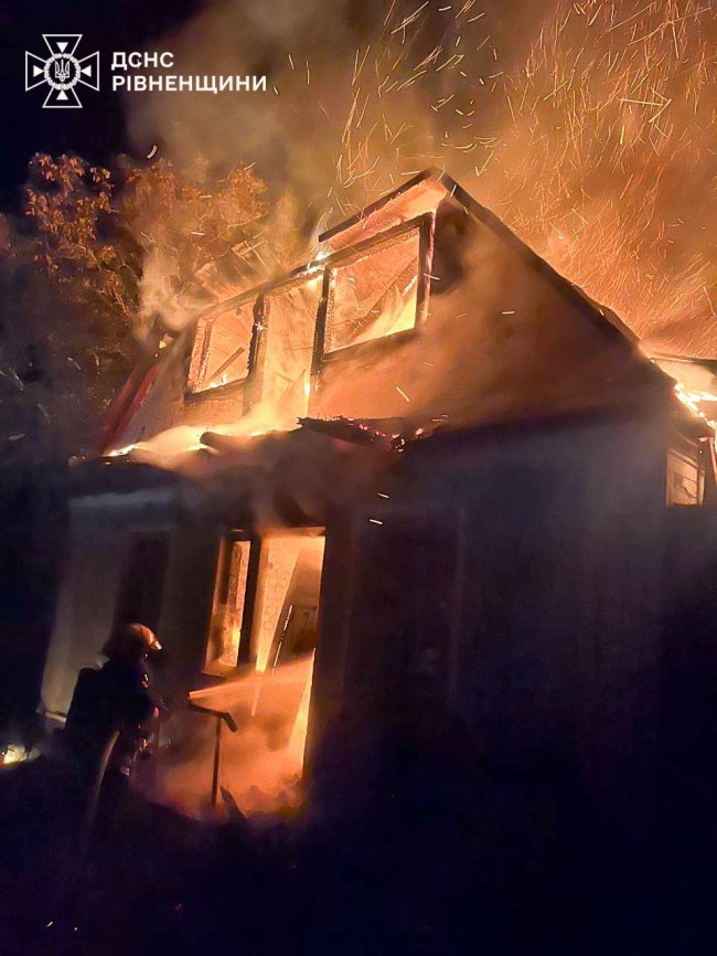 – На виклик прибули рятувальники 24-ї та 6-ї державних пожежно-рятувальних частин. Вогнеборці боролися з полум’ям майже чотири години, існувала загроза поширення вогню на поруч розташовану господарську будівлю. Вогонь знищив покрівлю та перекриття, а також речі домашнього вжитку, – розповіли у ГУ ДСНС Рівненщини.