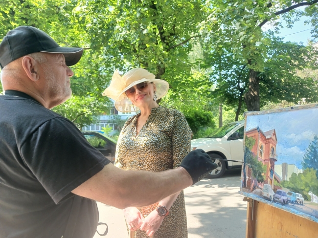 Сьогодні він писав вулицю Шопена і його унікальну кам’яницю. Скільки людей підходило до художника! Кожен розглядав живопис і приглядався до оригіналу, дивився наче вперше! Чудовий мистецький проект! Чекатимемо на виставку!