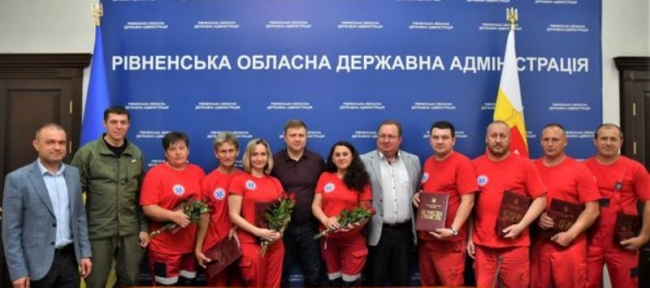 Почесними грамотами Кабміну за особисту мужність і героїзм, виявлені при виконанні службового обов’язку, значний внесок у надання професійної медичної допомоги в умовах правового режиму воєнного стану, проявлений патріотизм та вірність обраній справі нагороджено працівників Рівненської станції екстреної (швидкої) медичної допомоги КП «Обласний центр екстреної медичної допомоги та медицини катастроф» :