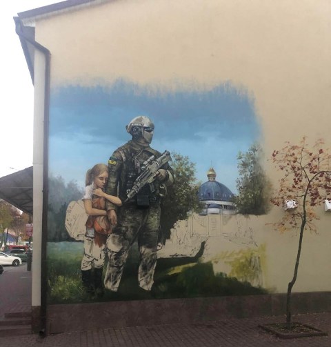 Зображення воїна-захисника і дитини, яку він боронить від ворожої навали, зображення Петро-Павлівського собору і кущ калини, що росте під муралом, поєднали в собі дуже багато символів України. Символічно і те, що мурал розміщено на одній із стін будівлі дитячої поліклініки, що на вулиці Грушевського, яка упродовж сторіччя служить костопільчанам для захисту здоров’я молодого покоління, повідомляє Костопільська міська рада..