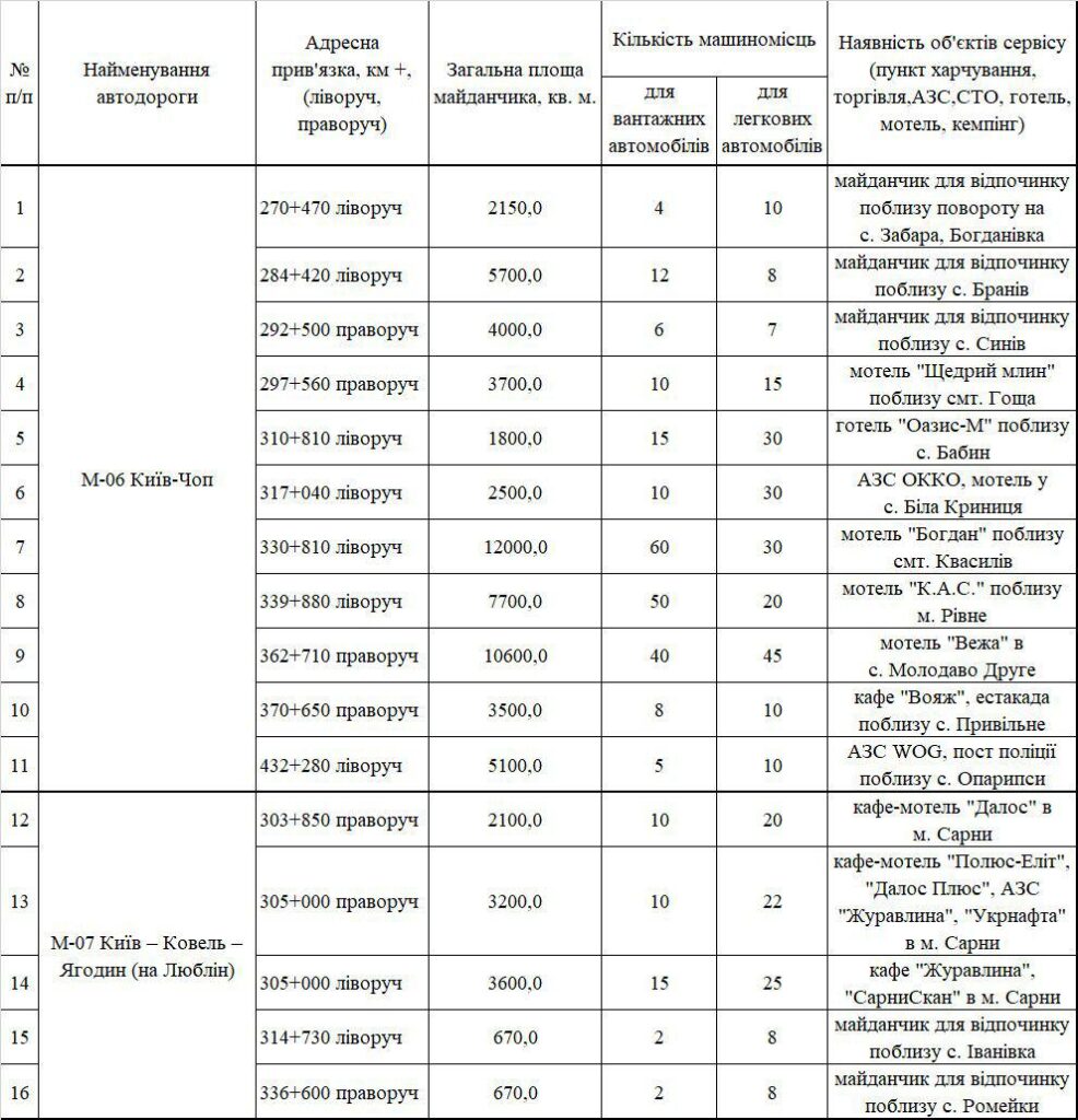 – Для забезпечення безпеки дорожнього руху визначено пункти відстою вантажівок, зокрема на автодорозі М-06 та М-07. Вони розташовані поблизу населених пунктів Синів, Гоща, Бабин, Біла Криниця, Квасилів, Рівне, Молодово Друге, Привільне, Опарипси, Сарни та інших, – кажуть у Рівненській ОВА.