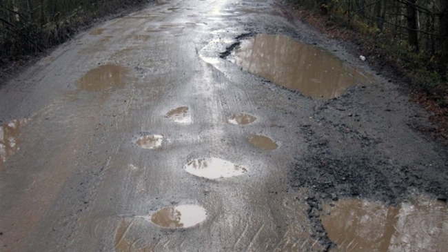 Як видно на відео, все дорожнє полотно, яке пролягає крізь ліс, – суцільні калюжі. Навіть невеликого клаптика без вибоїни немає.