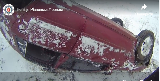 За декілька хвилин легковик, який лежав на даху, побачив поліцейський офіцер Здолбунівської територіальної громади Олександр Бондар. Правоохоронець прямував на патрулювання.