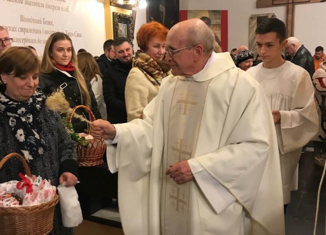 Вчора ввечері у костелі Петра і Павла та Божого милосердя освятили пасхальні кошики.