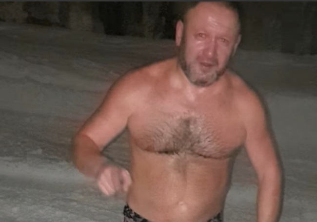 На відео видно, як лише в самих шортах чоловік стрибнув у сніговий замет.