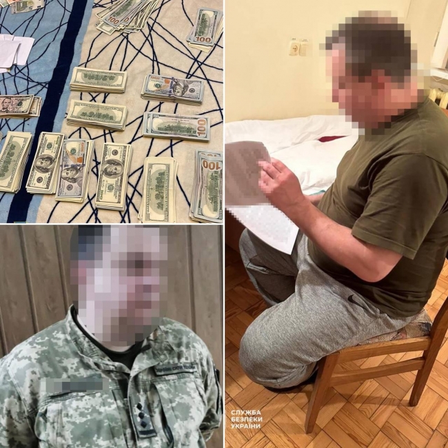 Співробітники СБУ задокументували факт вимагання 5 тис. дол. з призовника. За цю суму службовець обіцяв сприяння у видачі чоловіку висновку комісії про непридатність до військової служби за станом здоров’я з подальшим зняттям з обліку у військкоматі. Правоохоронці задокументували факт передачі першої частини неправомірної вигоди у розмірі 2,5 тис. дол.