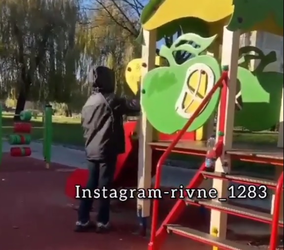 У соціальних мережах активно обговорюють вчинок хлопчика, який у Рівному витирає дитячий майданчик від написів.