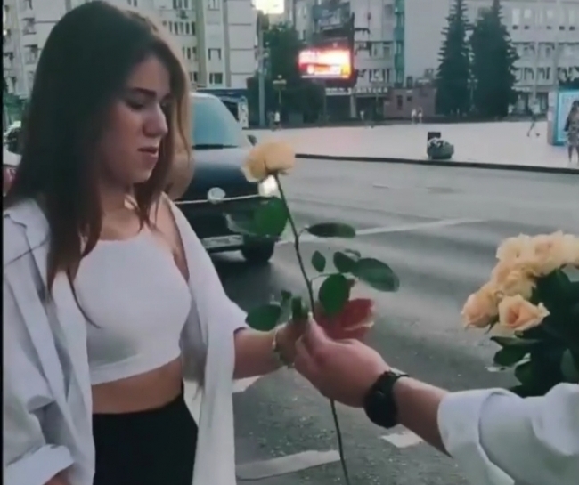 Кожна з перехожих отримувала троянду. Хоча це й виглядало несподівано, втім дівчата не відмовлялись від квітів і посміхались хлопцю у відповідь.